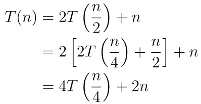 예로 들어, T(n) = 2T(n/2) + n라는 식을 다시 계산해보자. 처음에 T(n)을 n^2의 시간복잡도를 가진다고 생각하면 이렇게 계산 가능하다.