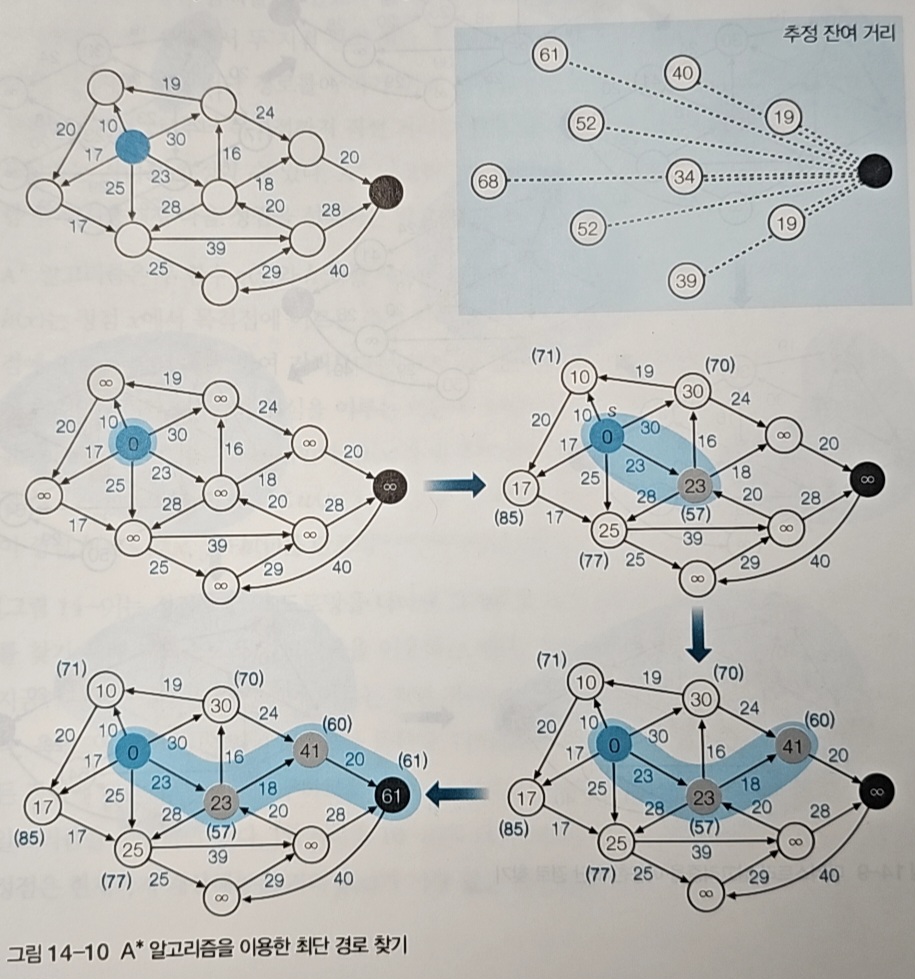 한정 분기에서 "실제 거리 + 남은 거리 추정"으로 하한값을 계산했던 것처럼, A*도 같은 방식으로 각 경로를 평가한다.