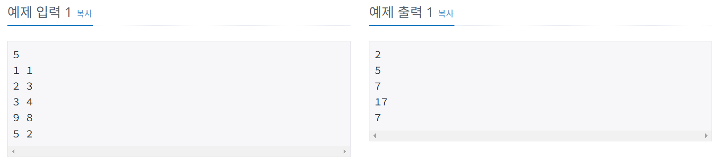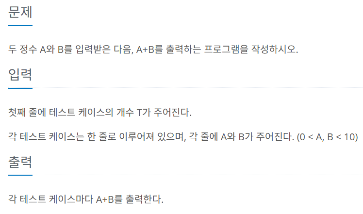 코딩테스트 8일차(2025.01.22) - 10950번(A+B - 3)